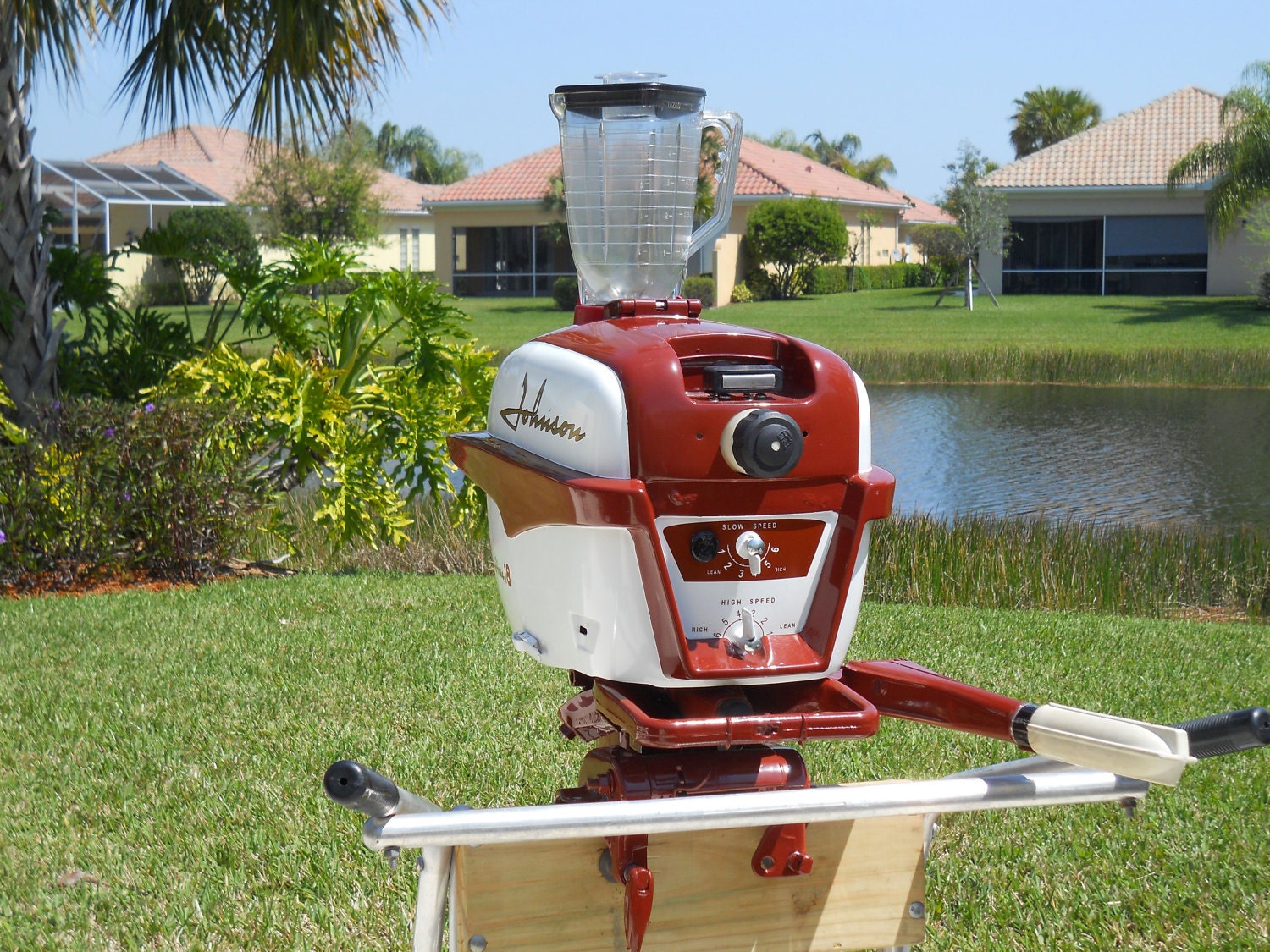 Essa batedeira foi feita com um motor Johnson Sea Horse 18, ano 1958. Só não sei se vai combinar com a decoração da sua cozinha. A única coisa salgada é o preço, U$2800,00, na Etsy.